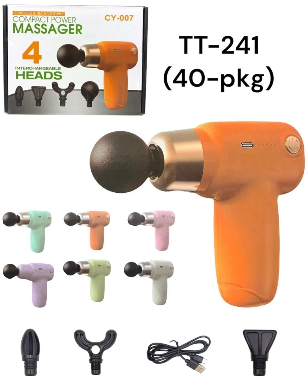 ompact Power Massager CY-007 is a versatile wellness device designed for full-body relief. With 4 interchangeable massage heads, a 3000rpm motor, and 5 adjustable speed levels, it delivers targeted vibration therapy to ease muscle tension, fatigue, and soreness. The 4000mAh rechargeable battery ensures extended cordless use, while the lightweight, ergonomic design makes it perfect for home, office, or travel. Ideal for men and women seeking deep tissue comfort with style.