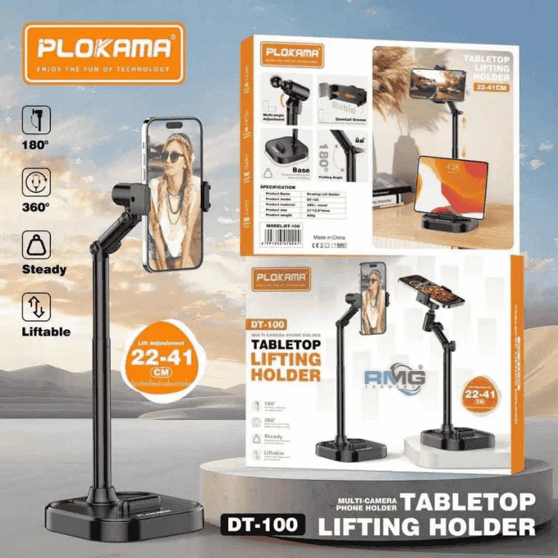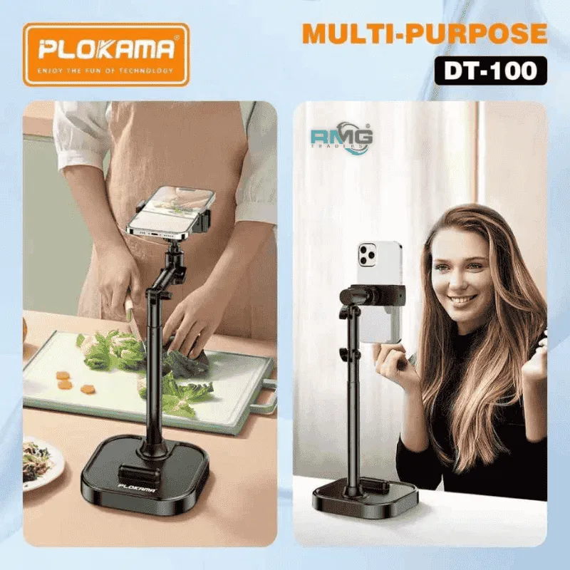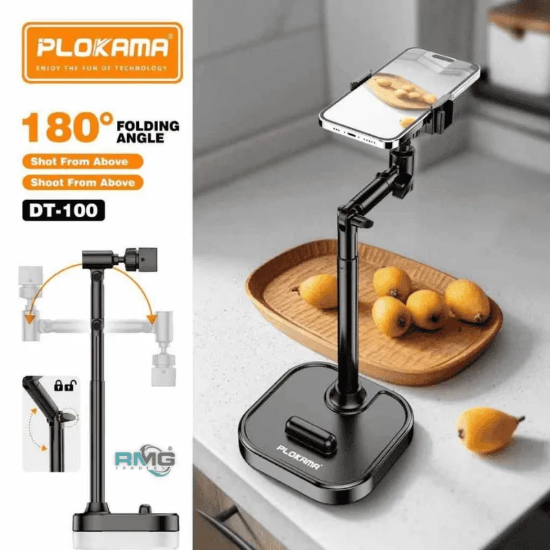 The PLOKAMA DT100 Flexible Aluminium Desktop Stand is a heavy-duty, professional overhead mounting solution designed for advanced content creation. Built with a stronger aluminium structure and extended flexibility, it allows creators to capture perfect top-down and angled shots for photography, video recording, tutorials, and live streaming.